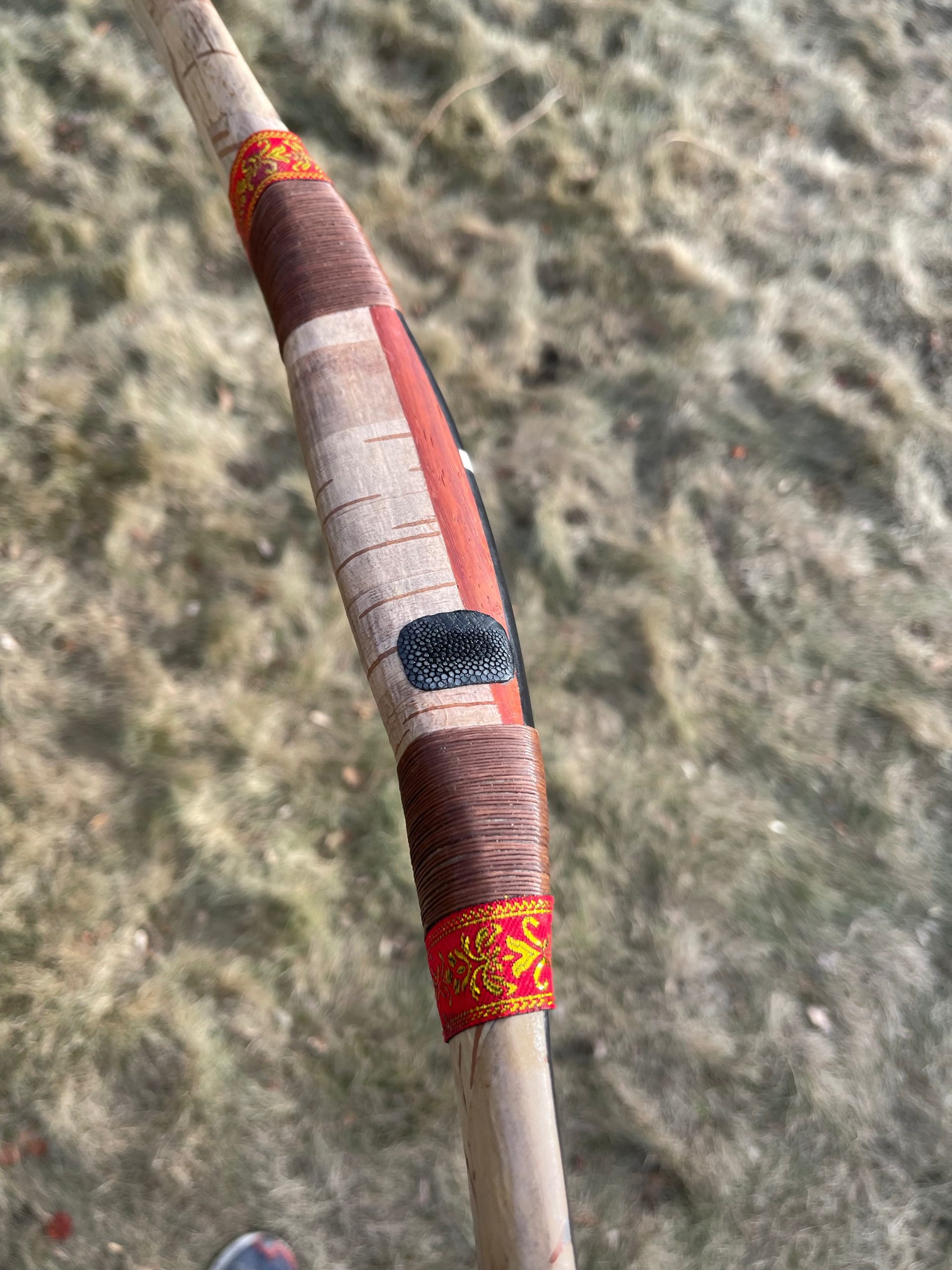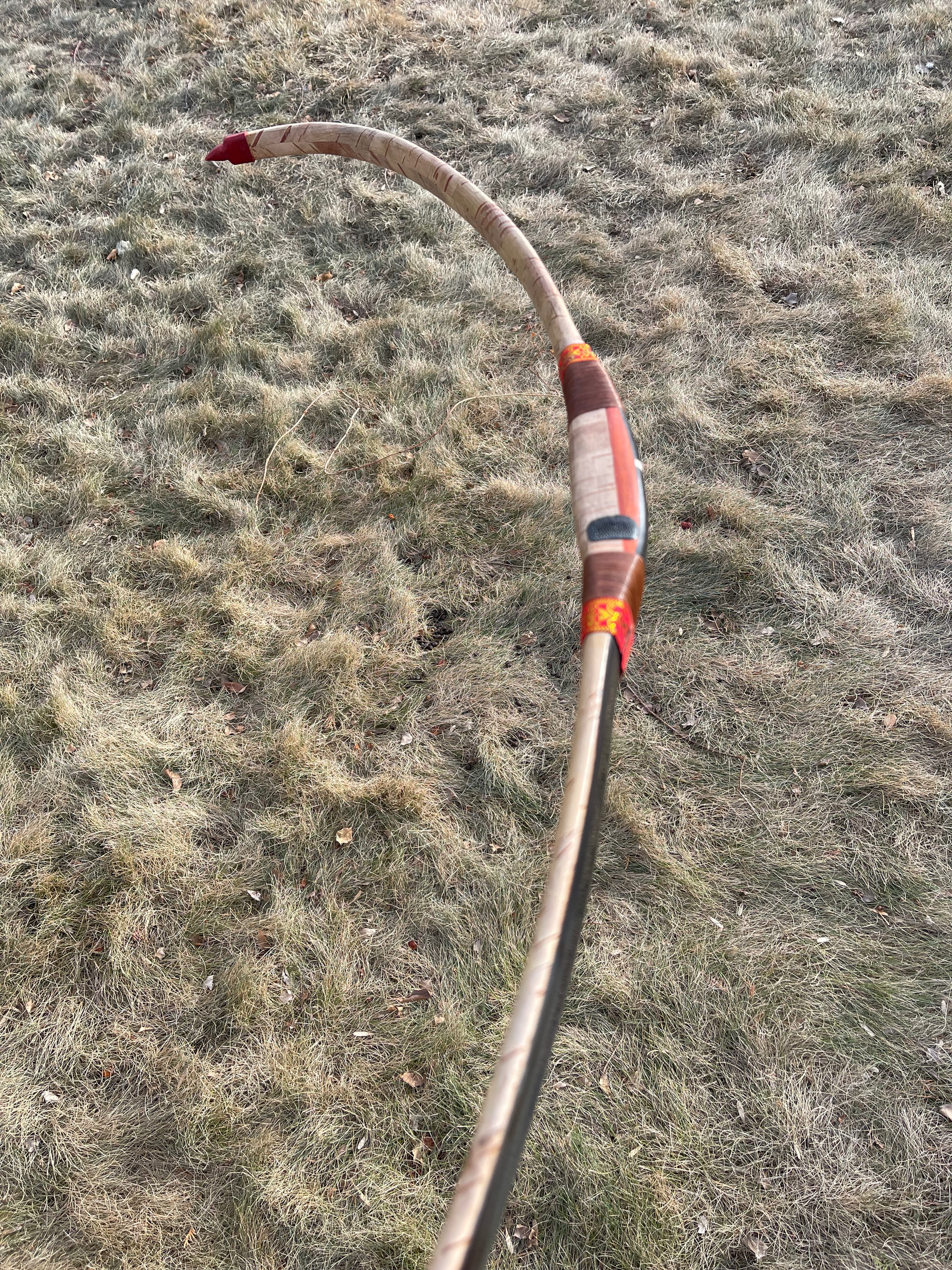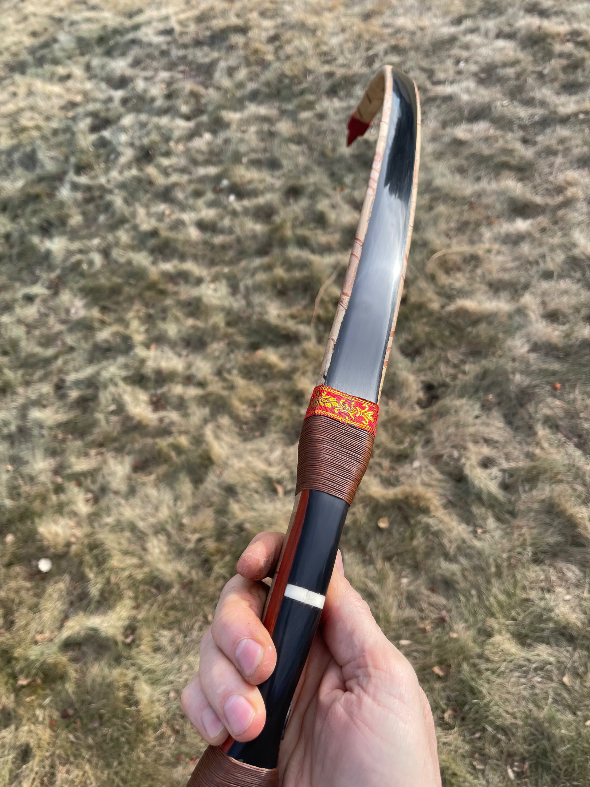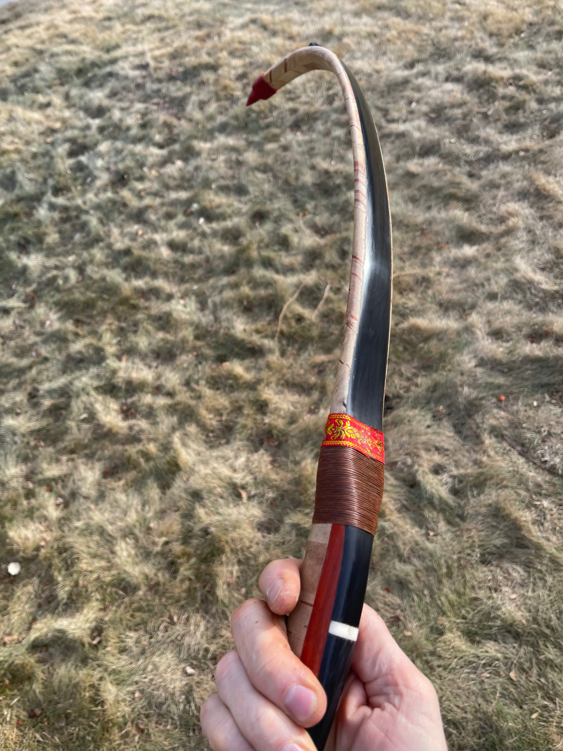 Ok so I think I’m done with this bow. I got it all finished up the way I like. The video link below shows the bow in better lighting. I’ll post some pics here too. I lost my white string material somewhere on the big move. I’ll have to order some and study up on Korean bow strings. I will do a full draw pic upload in few more weeks as I introduced some moisture into the bow for sure when getting the birch bark applied. If you look back in previous pics and video clips on the progress build of the bow you’ll get and idea of the bend. Thanks for watching and following along on this one. It’s been quite the journey moving across the country. Still need to get settled in my new shop. Things are everywhere!