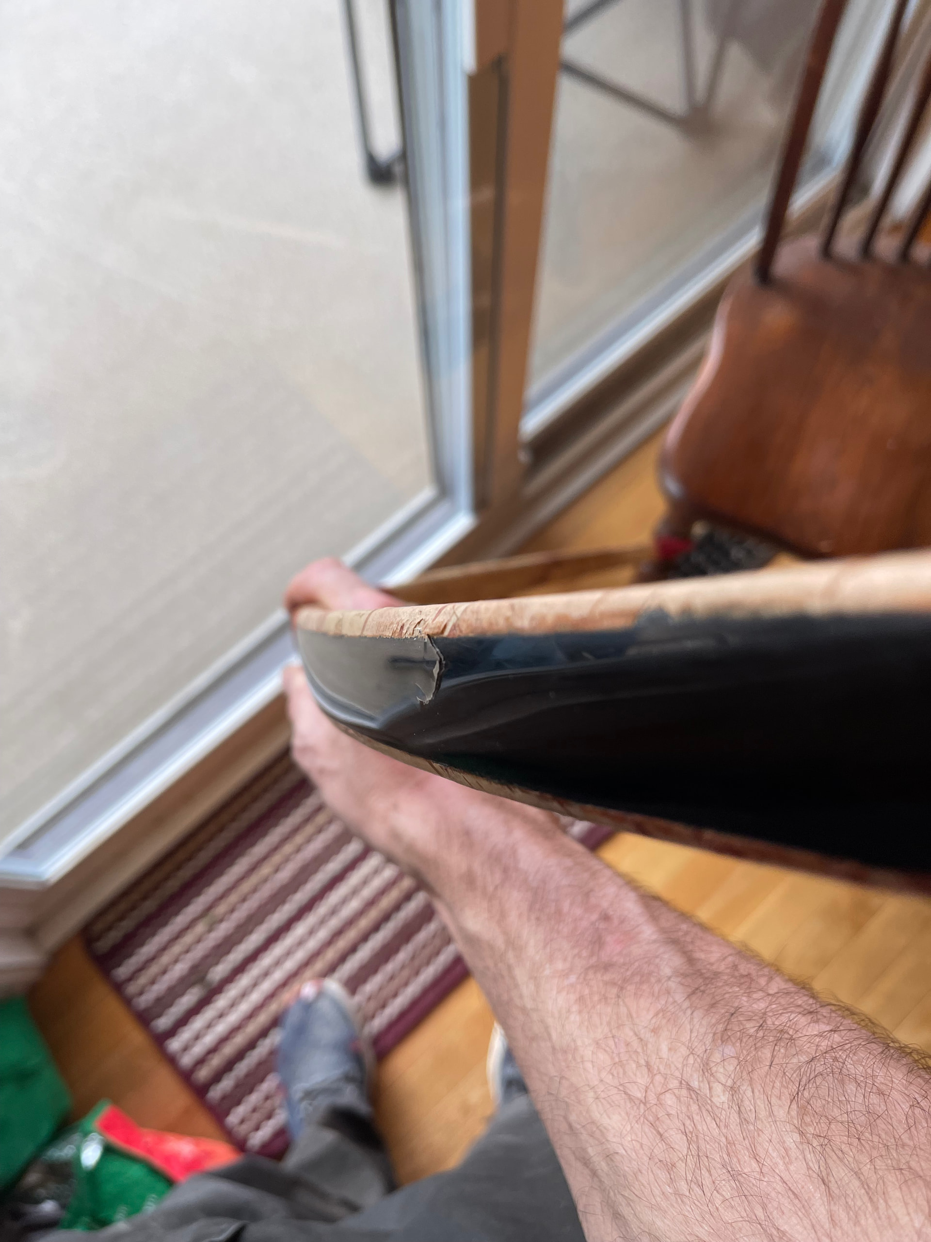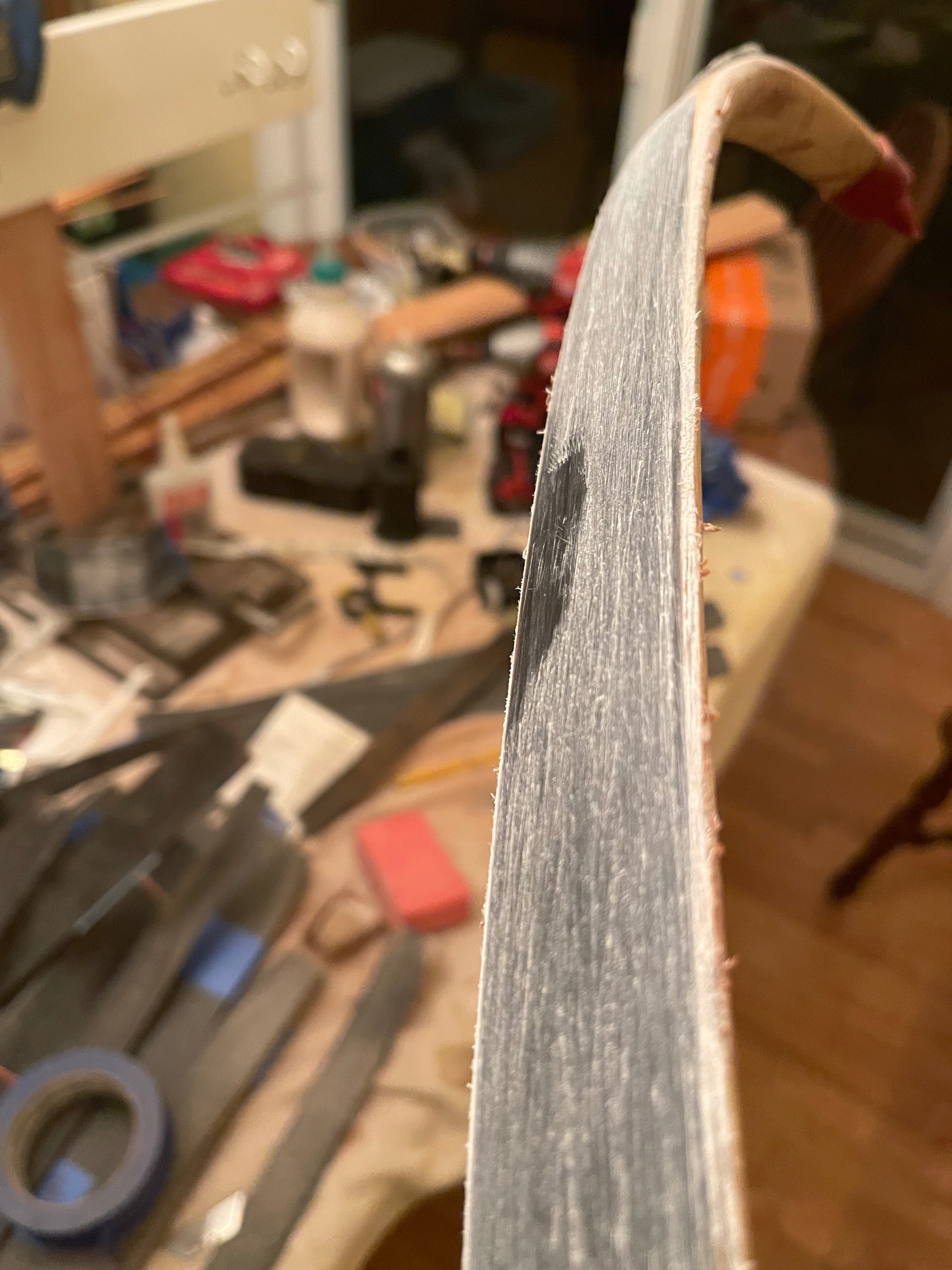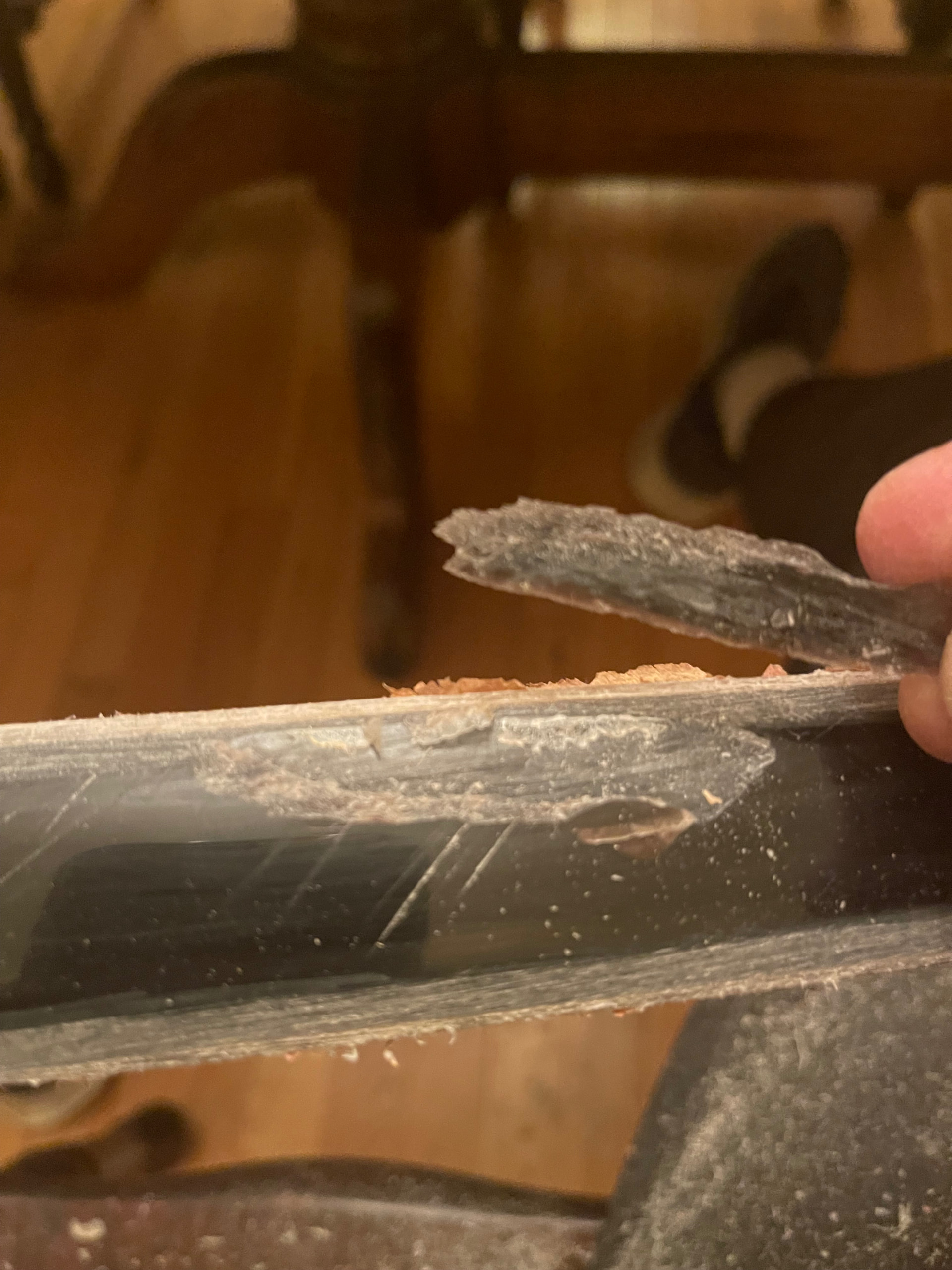 Yes. I agree with what you’ve said. I think this one may have been doomed due to the crack that I knew was there from the start. I went against my better judgement and decided to proceed anyway. The dryness Likely didn’t help either. I get my humidity in the house the last month or so around 50%. I’m already filing down the horn this morning and having a post mortem. It seems that it’s just surface crack delaminate within the section outer layer of the horn. So it may be that I can just lighten up the bow and scrape for say a 50lb instead of 70lb. Or I just rasp it all off and replace it. I’ll know better when I do more here. You can see the little dip in the horn as I worked it down some. Still a little more to go. Thanks for the insight and wisdom.