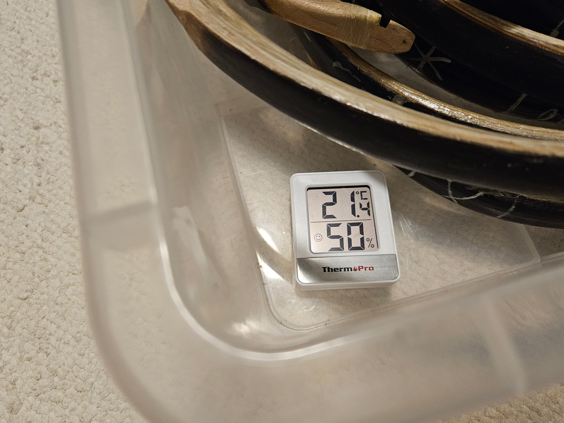 I store my bows in a box. There i have a small cup of water and humidity meter. Sometimes i’ve had drying cracks which i want to prevent this time.